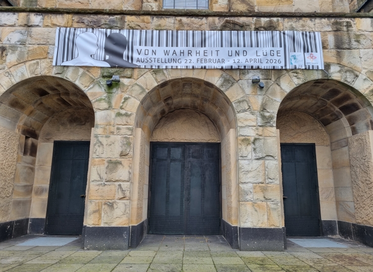 Das Hinweisbanner hängt schon vor der Erphokirche. Es zeigt, dass am 22. Februar eine neue thematische Ausstellung eröffnet wird.