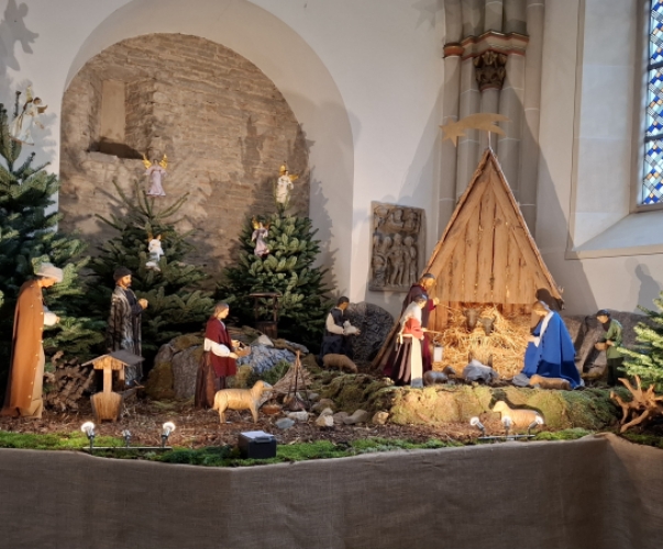 Am 13. Dezember war es wieder soweit. In der Mauritzkirche wurden die Weihnachtsbäume und die Krippe aufgebaut.