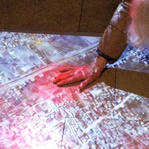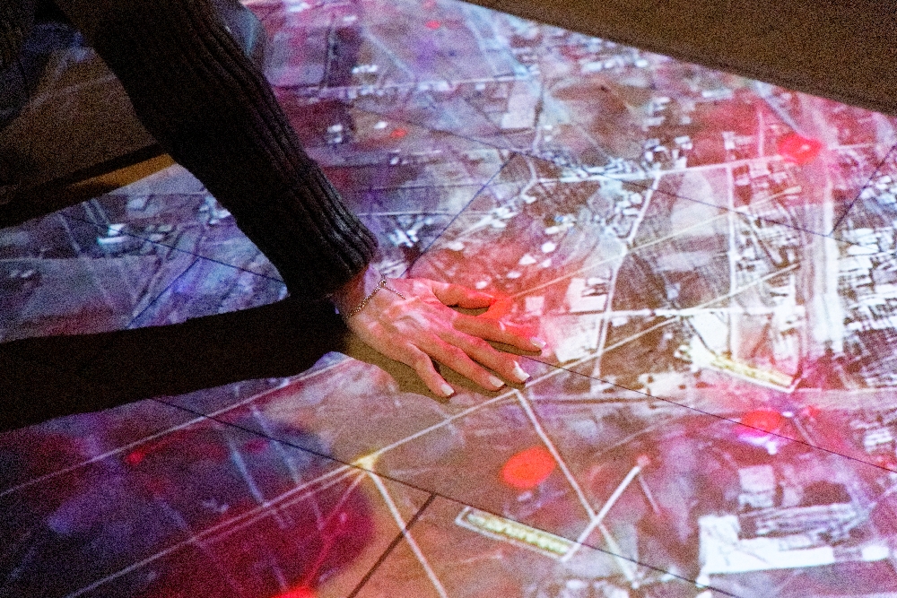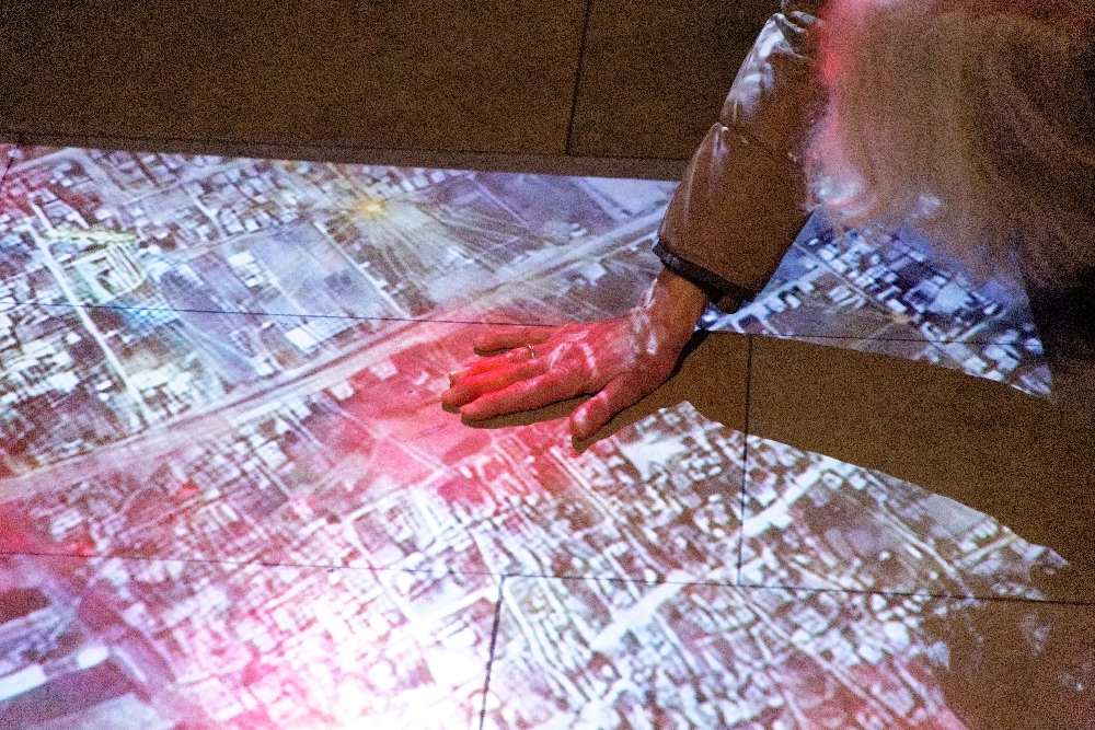 An der dritten Station wurde eine forensische Karte des Gazastreifens auf den Boden der Kirche projiziert, die mit roten Punkten deutlich machte, in welchen Häusern und an welchen Orten Hunger herrscht und lebensbedrohliche Not. Menschen sind verantwortlich, wenn Frauen kein Brot mehr backen keinen Teig mehr kneten können. Auch hier hat das iranische Regime seine Hände im Spiel als einer der wesentlichen Finanziers der Hamas. Weil in Gaza solcher Hunger herrscht, hatten sich die Künstler entschieden in ihrer Performance auf das Backen des Brotes zu verzichten, das zu Anfang geknetet wurde.