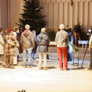 Unter dem Titel Brot, Brief, Gemeinschaft fand am 9. Januar nach dem Friedensgebet in der Erphokirche eine intermediale Performance statt. Der aus dem Iran geflüchtete Dokumentarfilmer Vahid Zarezadeh hat das Projekt entwickelt, seine Kollegin Gelareh Kakavand hat es mit Hilfe einer Dolmetscherin präsentiert. Die Aufführung konnte in Kooperation mit Jens Schneiderheinze von der Linse und der Fachgruppe KunstKircheKultur in der Erphokirche umgesetzt werden.