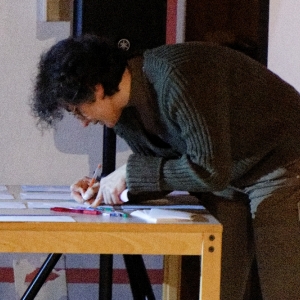 Nach dem Teigkneten gab es an einer zweiten Station Videoclips von den Aufständen und Protesten vor allem der Frauen im Iran und weltweit gegen die lebensfeindliche Unterdrückung durch herrschende Machthaber. Frauen, die Brot kneten und Menschen ernähren, gehen auf die Straße und protestieren gegen die, die Menschen unterdrücken und ermorden. Die Besucher*innen wurden aufgefordert in wenigen Zeilen einen Brief an die Frauen im Iran zu schreiben. Beim Vorlesen einiger Briefe, wurde deutlich, wie sehr die Exiliraner*innen aktuell in Sorge sind um ihre Lieben in der Heimat, weil alle Kommunikationswege, Telefon ebenso wie das Internet, im Iran unterbrochen sind, während die Demonstrationen weitergehen.