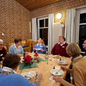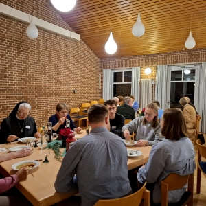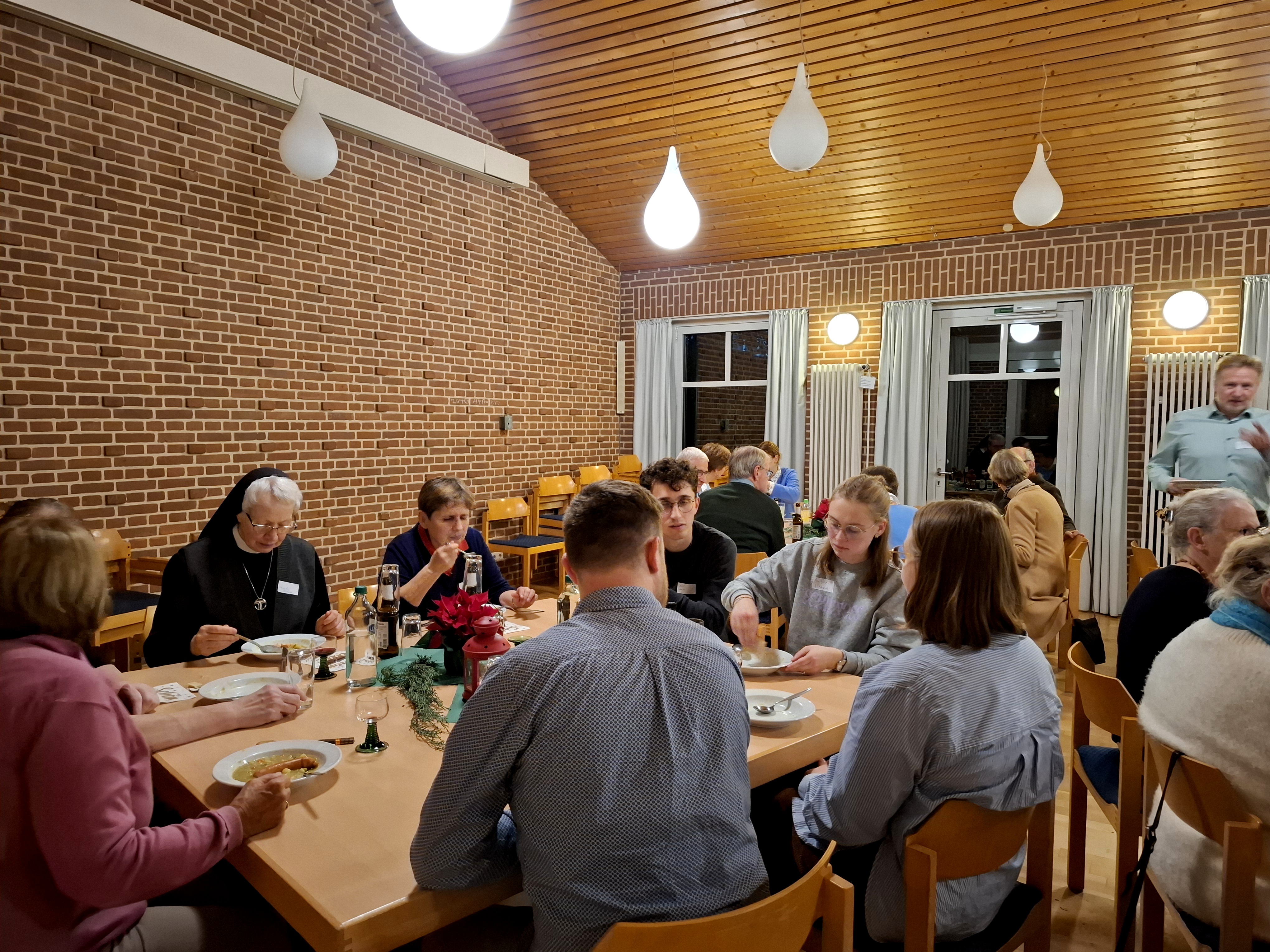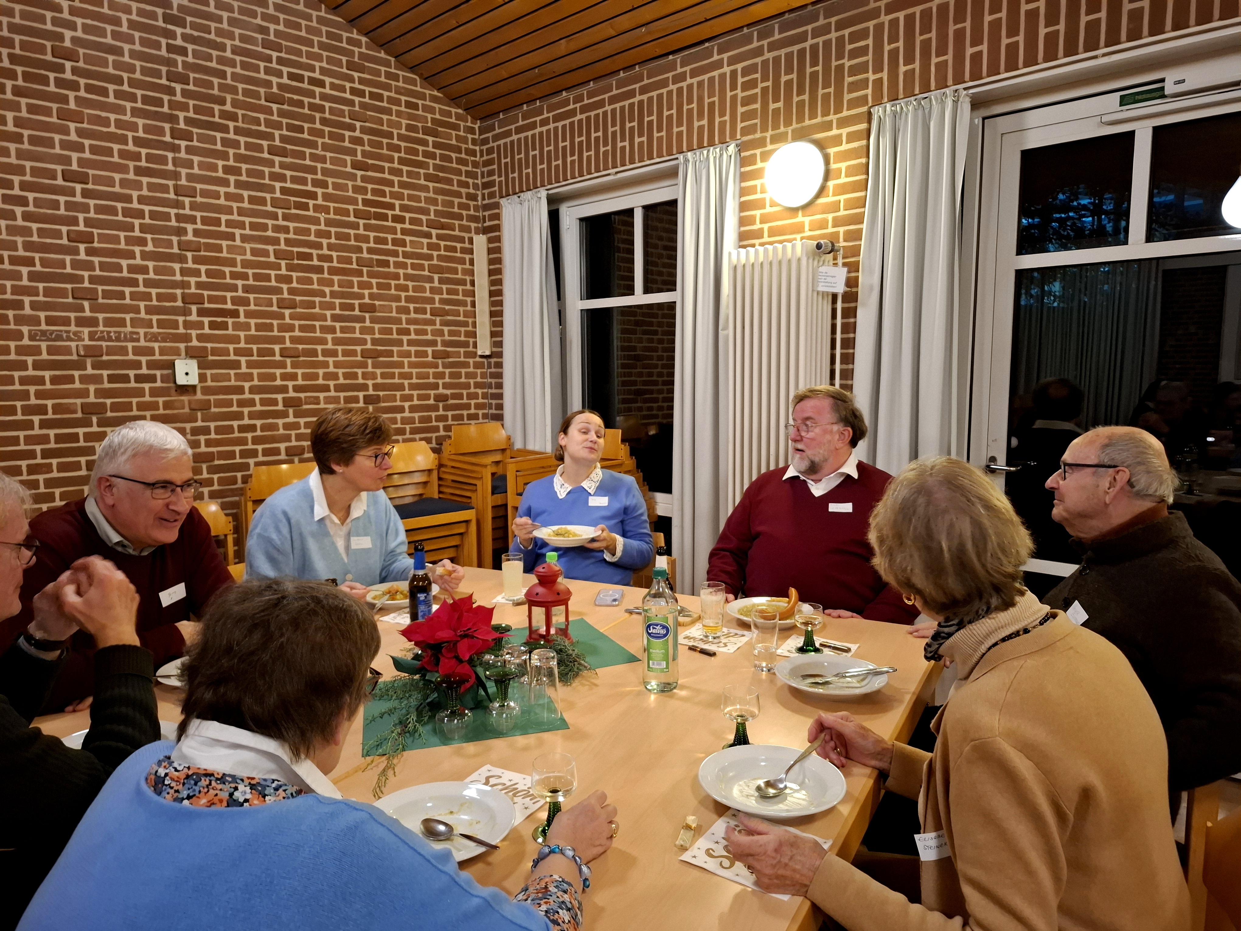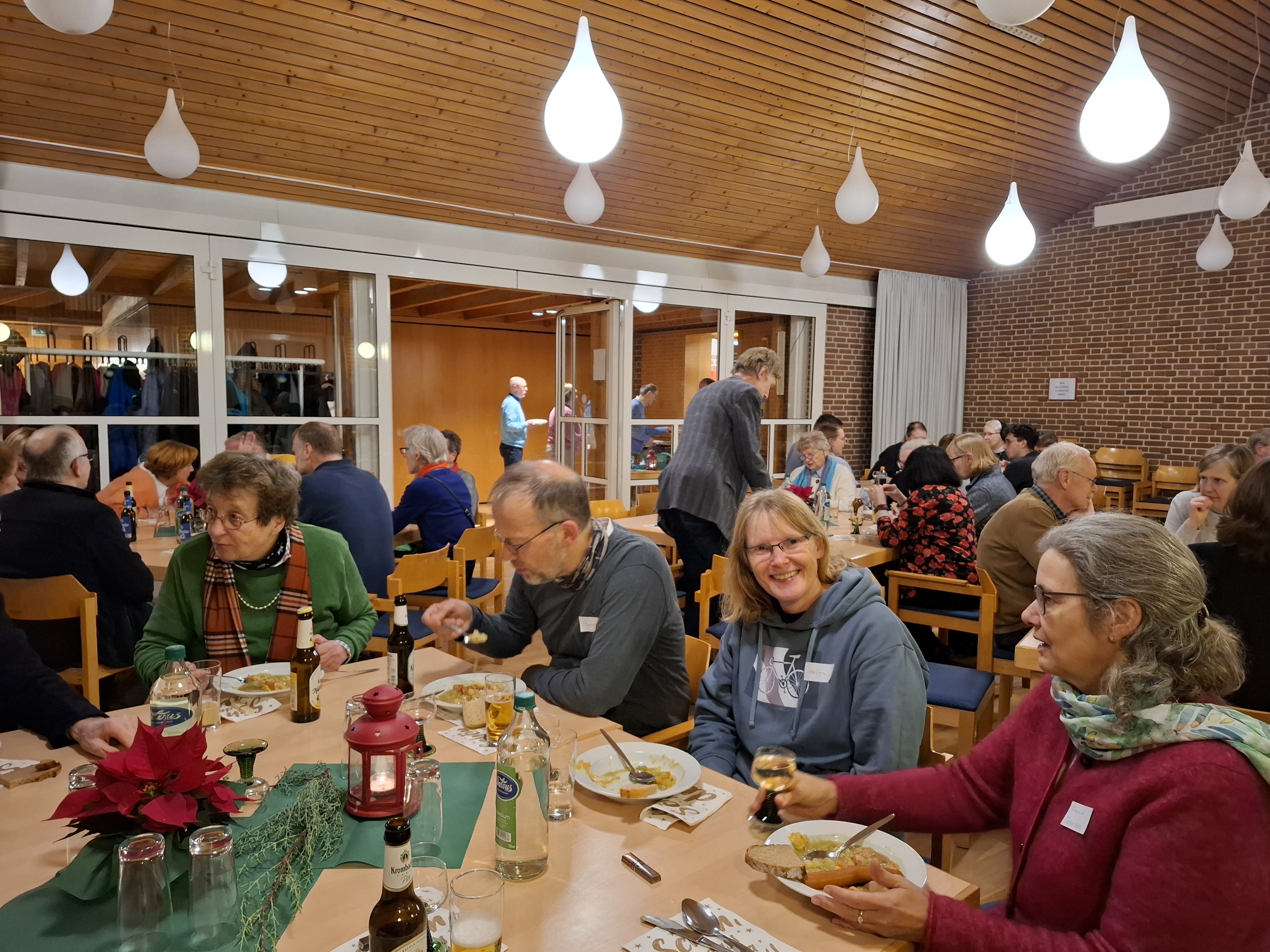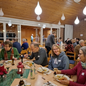 Anschließend ging es ins Pfarrheim. Dort war alles für einen schönen Abend der Begegnung vorbereitet. Und das wurde es auch. Man lernte sich kennen, tauschte sich aus und lachte miteinander. Für Essen und Getränke war selbstverständlich auch gesorgt worden. Es war eine schöne Atmosphäre und ein gelungener Abend.