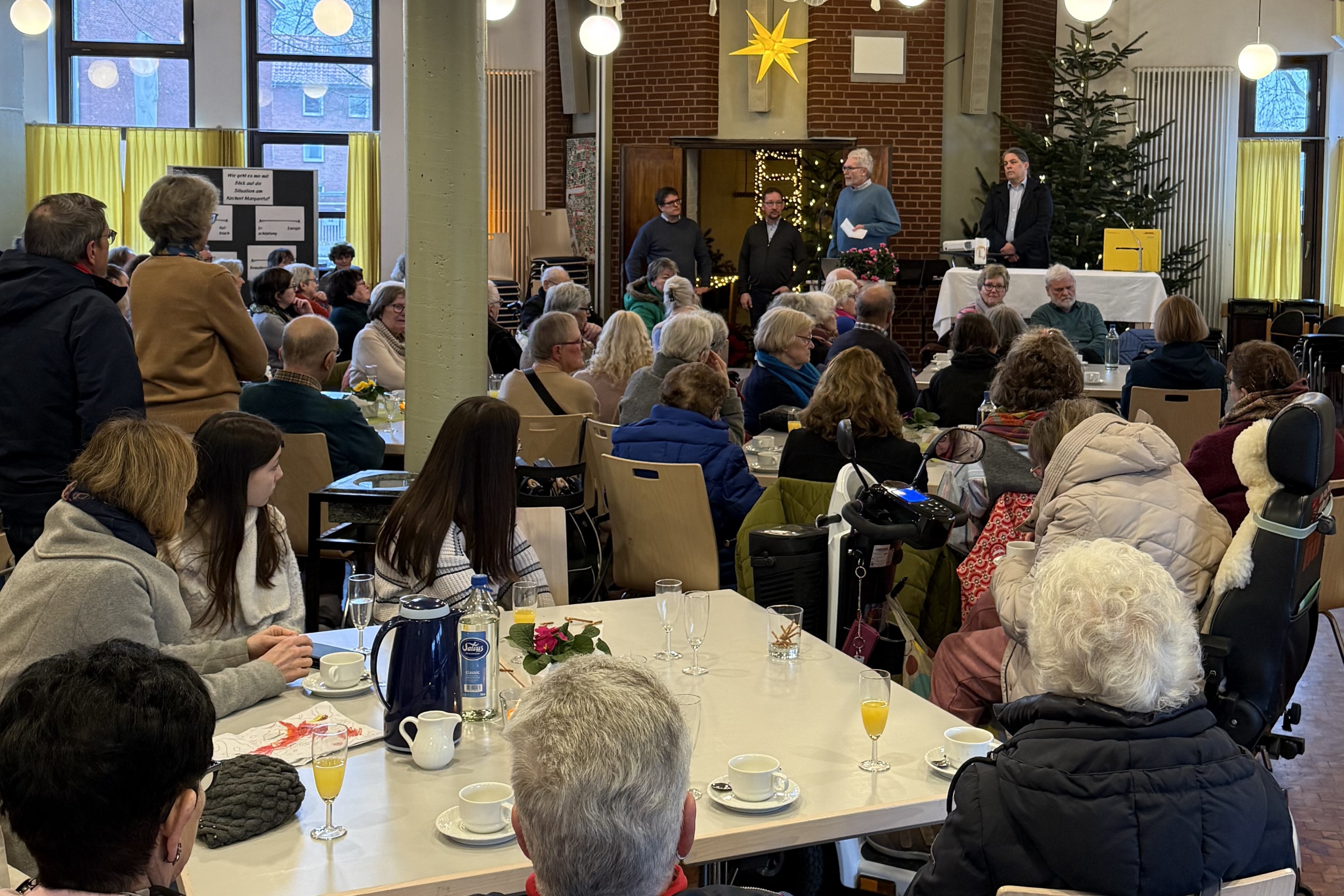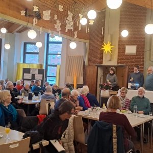 19.01.2026 Am Sonntag 18. Januar war Neujahrempfang am Kirchort Margareta. Nach einem gemeinsamen Gottesdienst mit musikalischer Gestaltung durch die Familienband, kamen Jung und Alt zusammen und stießen auf 2026 an. Das Evangelium des Tages wirkte, als ob es für die aktuelle Situation des Kirchortes geschrieben war: Pfarrer Rudi Gehrmann legte es so aus, dass der gemeinsame Geist, der Menschen trägt und zusammenhält bleibt - unabhängig von der Existenz von festen Gebäuden.
