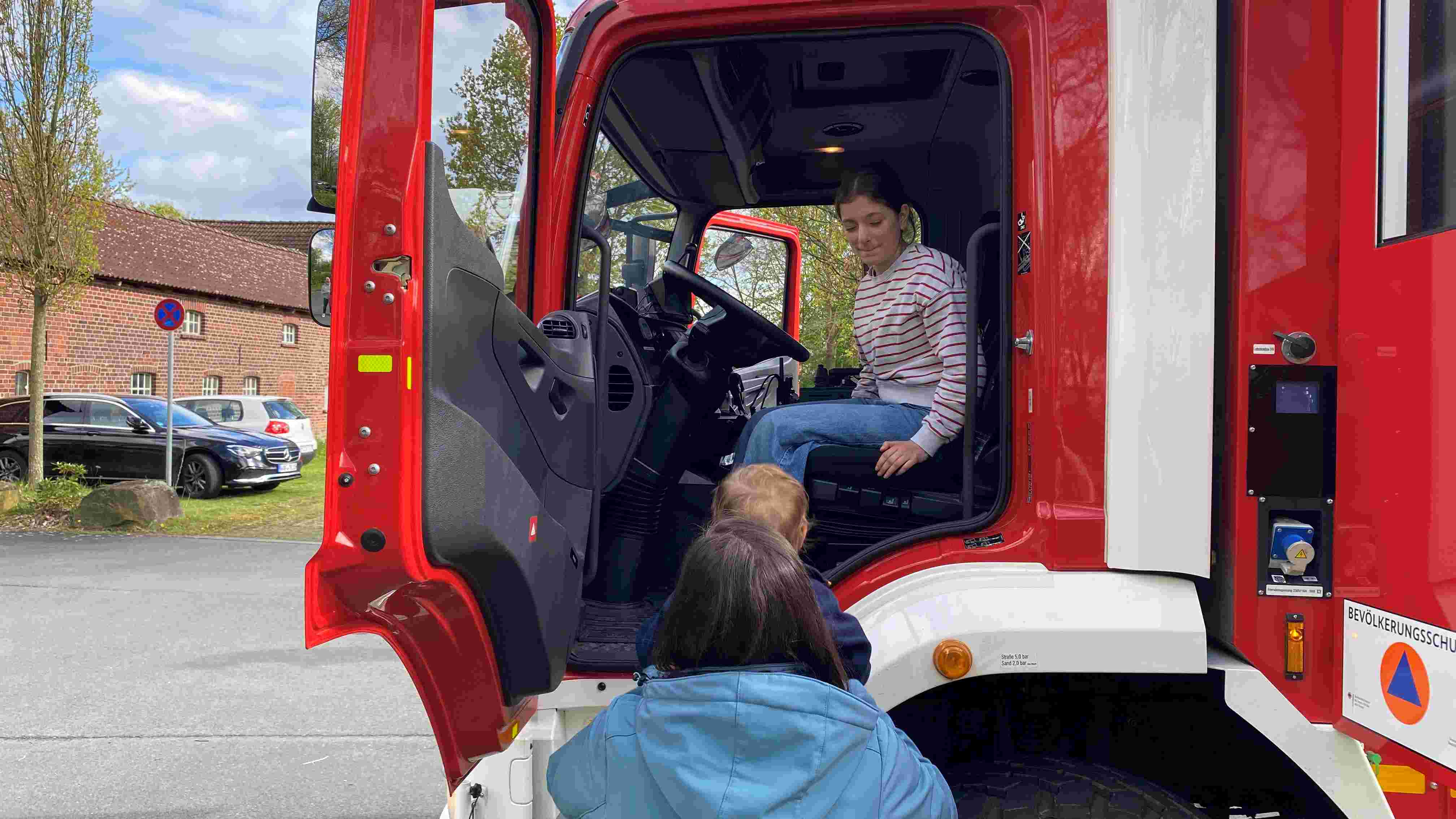 Beim gemeinsamen Mitbring-Picknick nach dem Gottesdienst blieb noch viel Zeit, um die Arbeit der Feuerwehr und ihre Ausrüstung samt Probesitzen in den Fahrzeugen kennenzulernen.