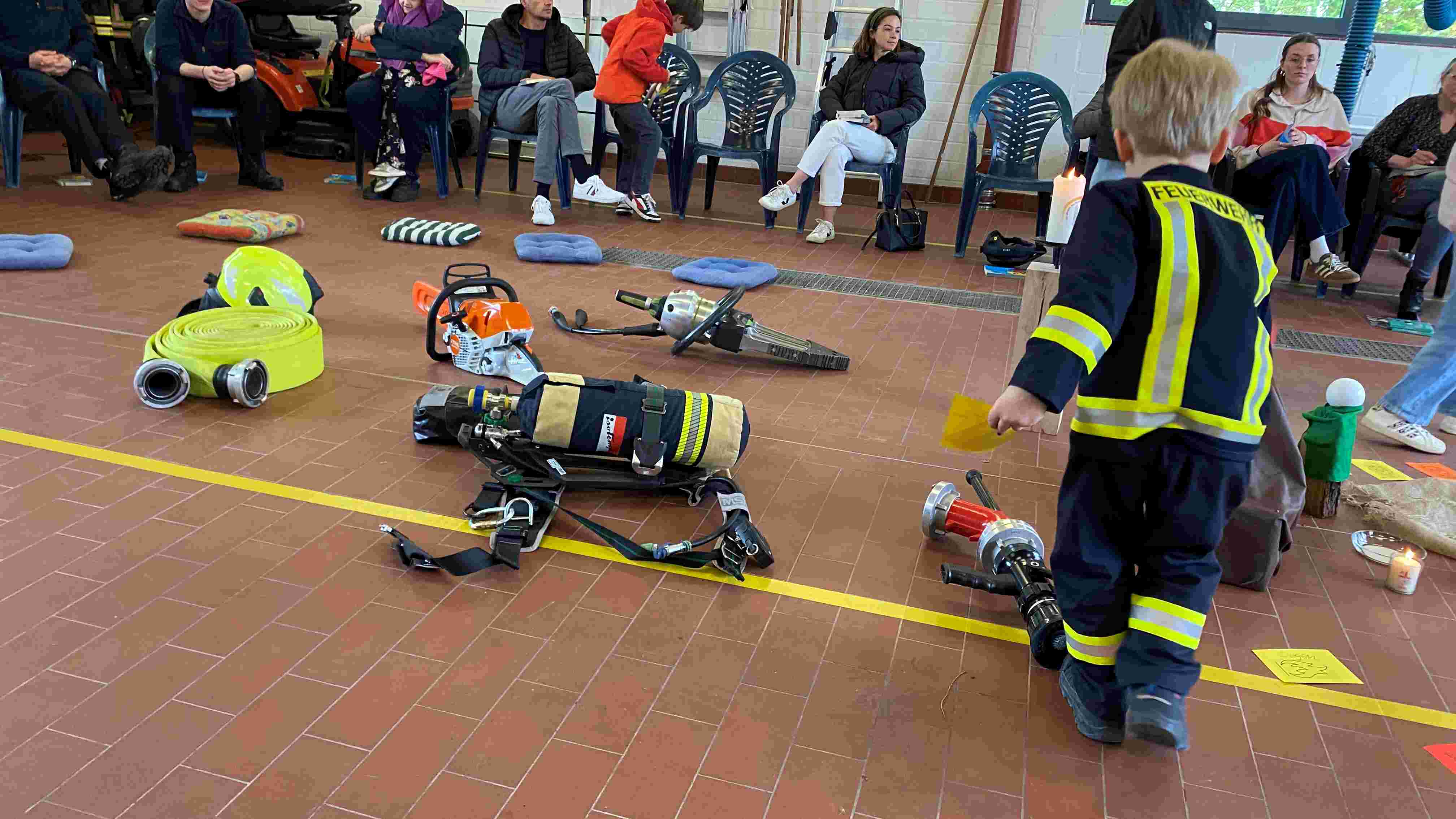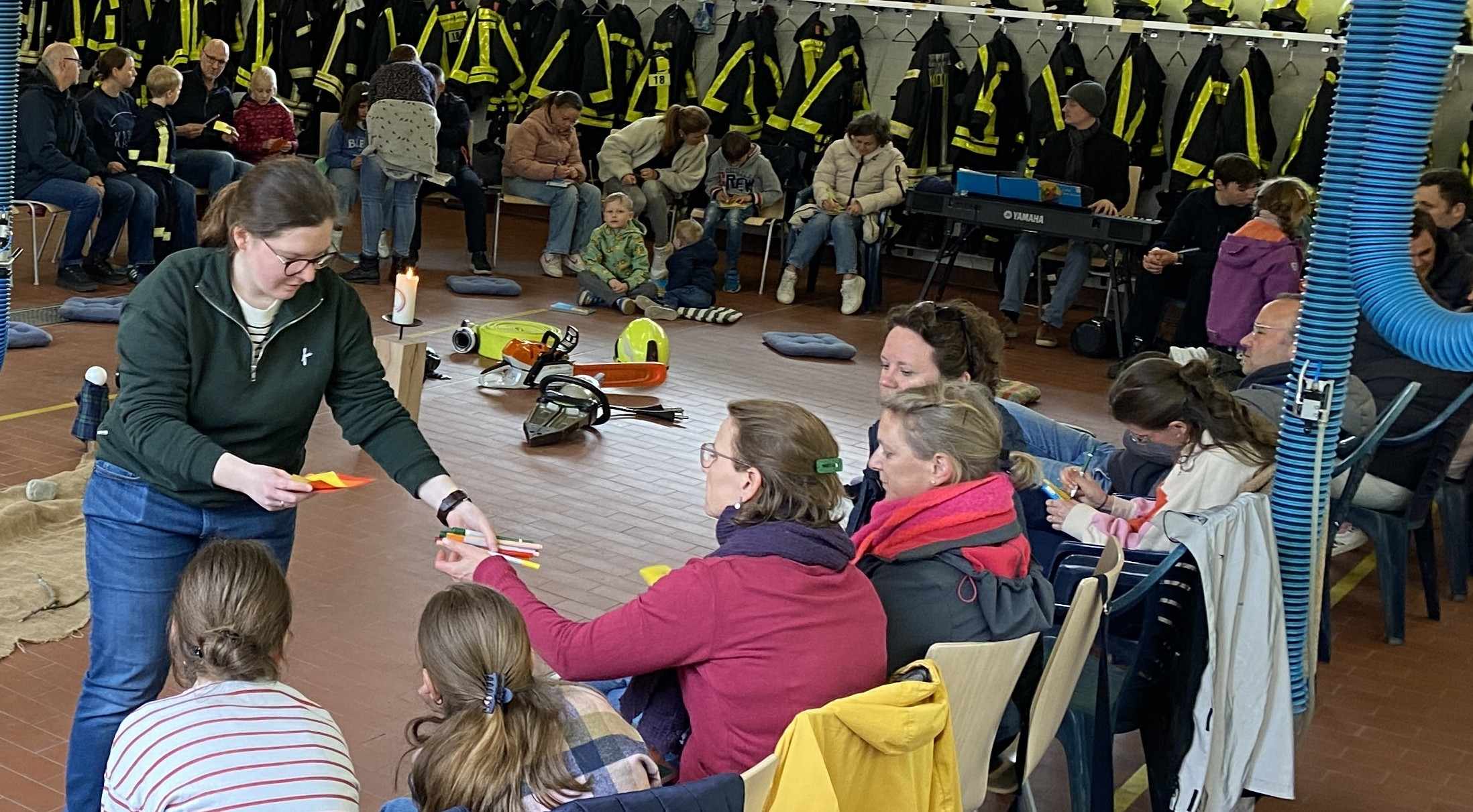 In Anlehnung an die Emmaus-Geschichte sind wir zwischen Feuerwehrauto, Schläuchen und Uniformen der Frage nachgegangen: Wofür brenne ich? Was begeistert mich so richtig? Passend zum Ort haben Mitglieder des Löschzugs erzählt, warum sie sich in der Feuerwehr engagieren und was sie daran begeistert.