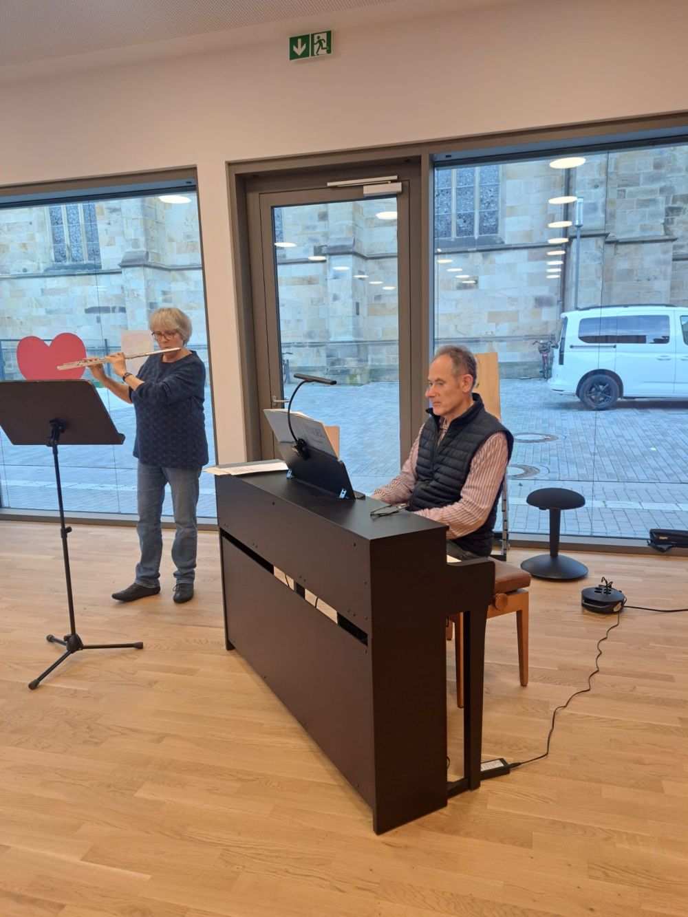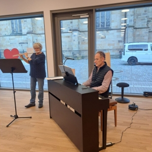Bereichert wurde der Nachmittag durch Instrumentalmusik von Händel, gekonnt vorgetragen von Gertrud Nikola (Querflöte) und Michael Schmutte (Klavier) Und es gab auch wieder den fast schon zur Tradition gewordenen leckeren alkoholfreien Punsch von Bernadette Alfert.