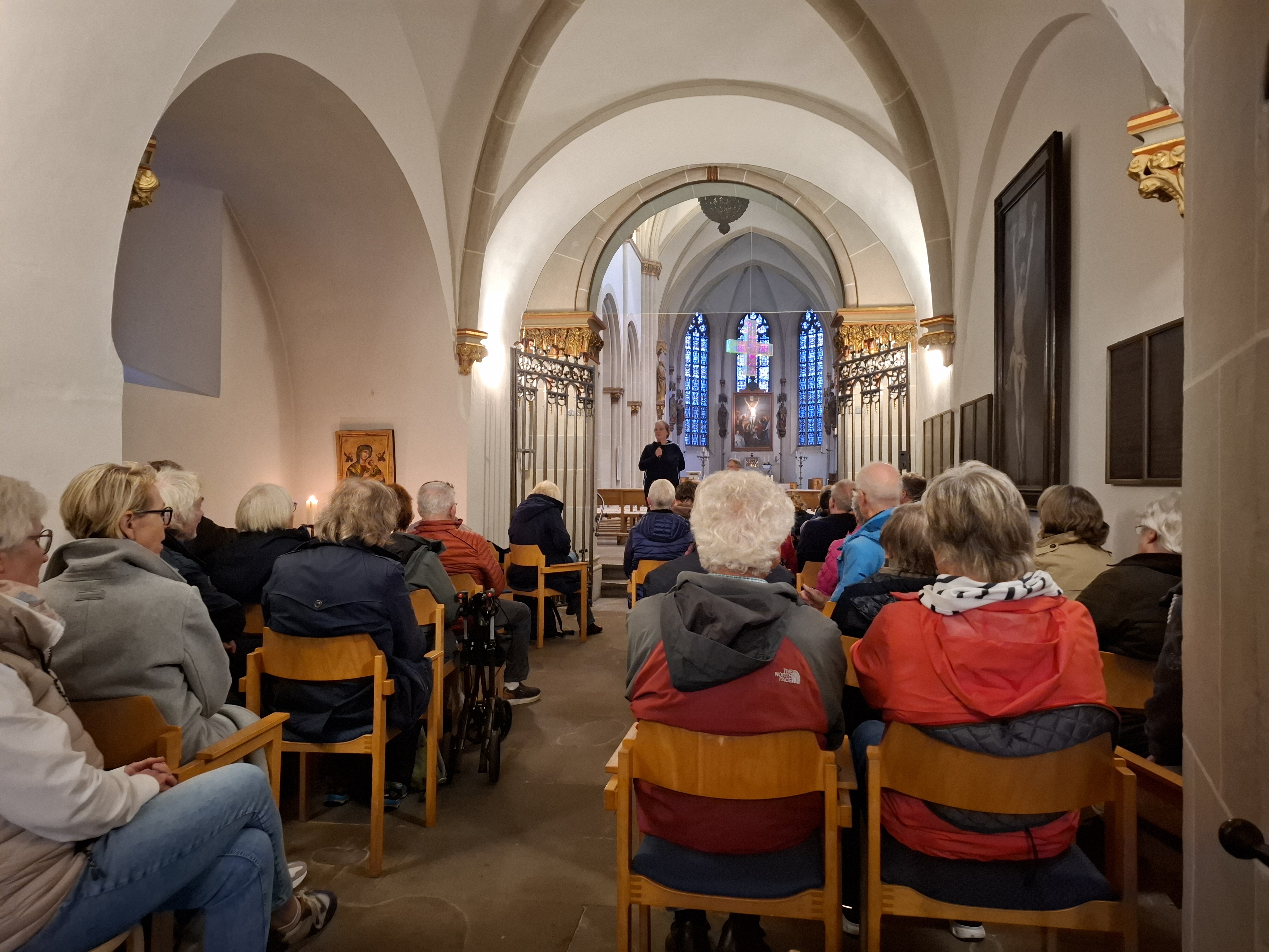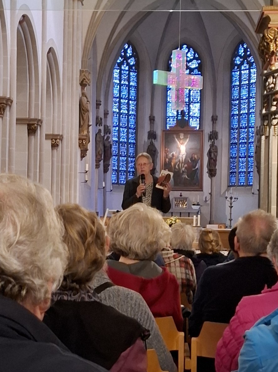 Die Nachfrage nach den Eintrittskarten zu dieser Lesung war sehr groß, so dass es gut war, dass die Lesung in der schönen Mauritzkirche stattfand. So viele Besucher:innen hätten in der Pfarrbücherei keinen Platz gefunden.