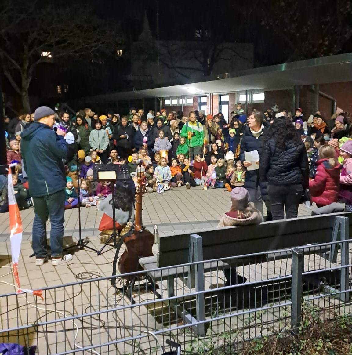 Nach der traditionellen Mantelleitung, mit der der Hl. Martin einem Bettler aus der Not half, durften alle Teilnehmenden dann auch teilen: Die zuvor mit einem Gebet gesegneten Milchbrötchen konnten durchgebrochen und mit anderen geteilt werden.