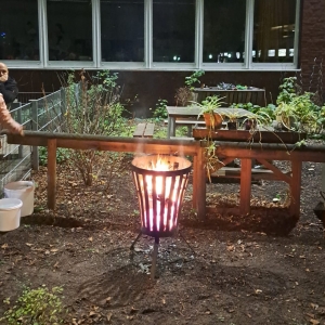 Dank der begleitenden Polizei und eigener Ordnerinnen kamen alle dort sicher an und wurden mit einem Feuerkorb, mit warmen Getränken und viel Musik empfangen. Hier konnte man dann auch in Ruhe die kreativen Laternen-Ideen bestaunen: Da gab es Marienkäfer und Dinos, Sonnen, sogar ein kleines Papier-Aquarium wurde gesichtet. Lustiges "Münster-Wetter-Modell" waren Klarsicht-Regenschirme, die mit bunten Bändern und LED-Lichtstreifen für Farbe sorgten.
