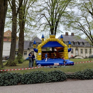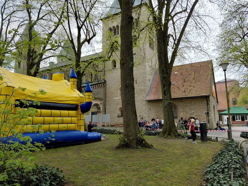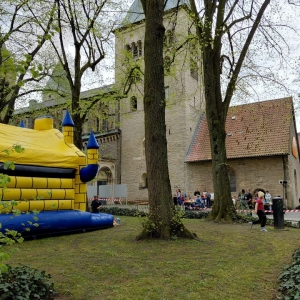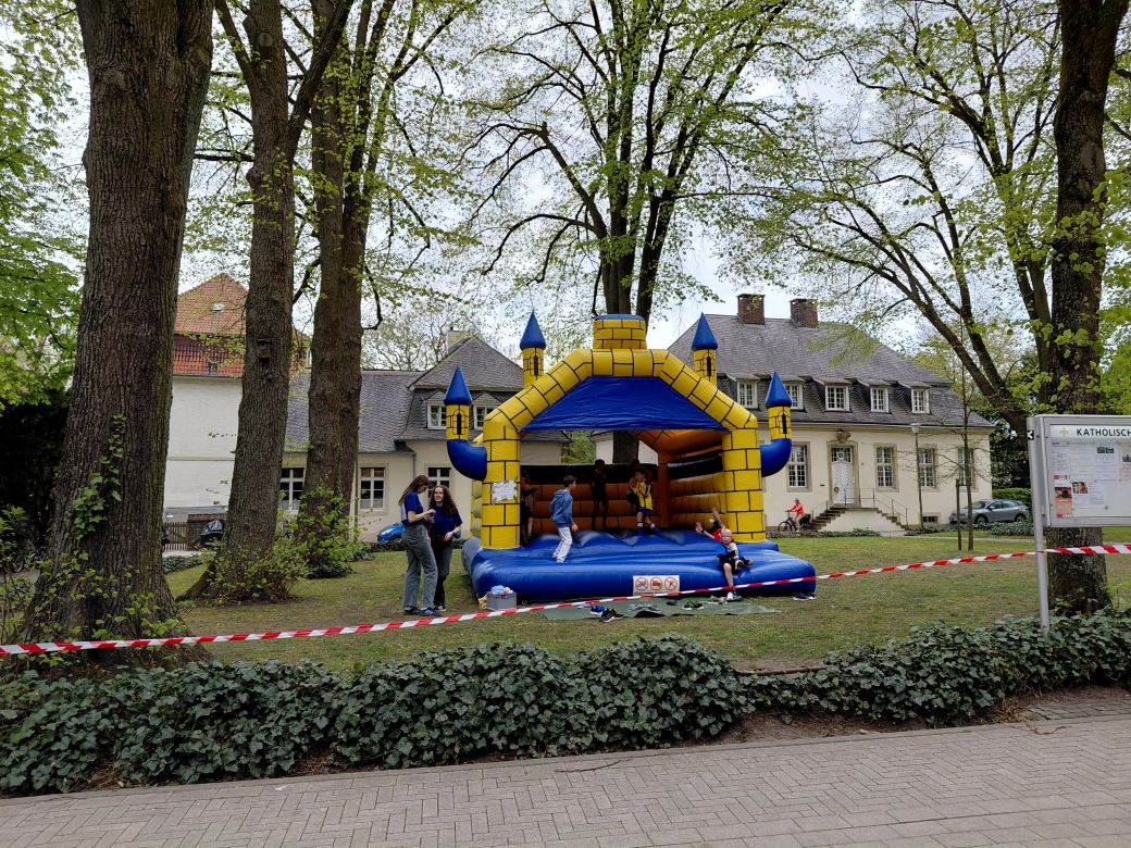 Zur Muskelauflockerung für die mit viel Sportsgeist gestarteten Kinder hatte die Pipho-Jugend eine Hüpfburg organisiert – auch für diese tolle Idee bedankt sich das Erstkommunion-Team ebenso wie bei den engagierten Eltern und den anderen Mithelfenden dieser Premiere.