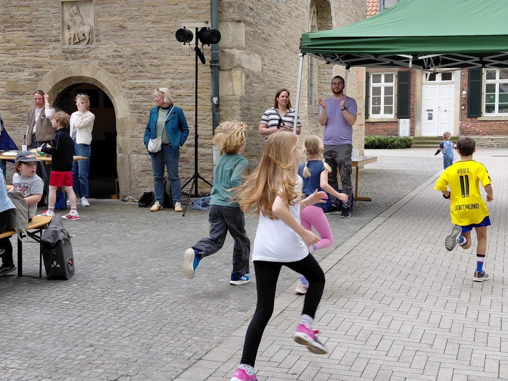 Zehn Runden um die Mauritz-Kirche sind am Samstag (18. April) zahlreiche Mädchen und Jungen gelaufen, die sich auf ihre Erstkommunion vorbereiten. Was dieser Sponsorenlauf mit ihrem kommenden Fest zu tun hat? Nun: Sie wollten wie Jesus Gutes tun und den Erlös an Kinder verteilt wissen, denen es in unserer Stadt nicht so gut geht.
